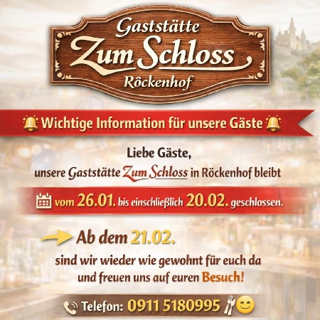 "Grüß Gott im Gasthaus zum Schloss" heißt es seit Generationen, wenn Gäste ankommen. Gastlichkeit ist bei uns mehr als ein Wort, sie ist eine Frage der Einstellung. In unserem traditionsreichen Gasthaus stehen schon immer gutbürgerliche, bayrisch-fränkische Gerichte mit frischen Produkten regionaler Erzeuger auf der Speisekarte - und das zu einem vernünftigen Preis. Ob ofenfrische Schäuferle, fangfrische Karpfen und argentinisches Rumpsteak oder einfach nur eine Brotzeit mit frisch gezapftem Bier - hier wird aufgetischt, was das Frankenland zu bieten hat.