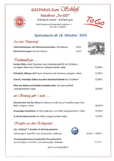 Bitte bestellen Sie Essen to go jeweils bis Samstag ausschließlich telefonisch vor.Tel. +49 (0)911 5180995 Die Beantwortung von E-Mails oder WhatsApp Nachrichten ist aus organisatorischen Gründen leider nicht mõglich. Wir bitten diesbezüglich um Verständnis.